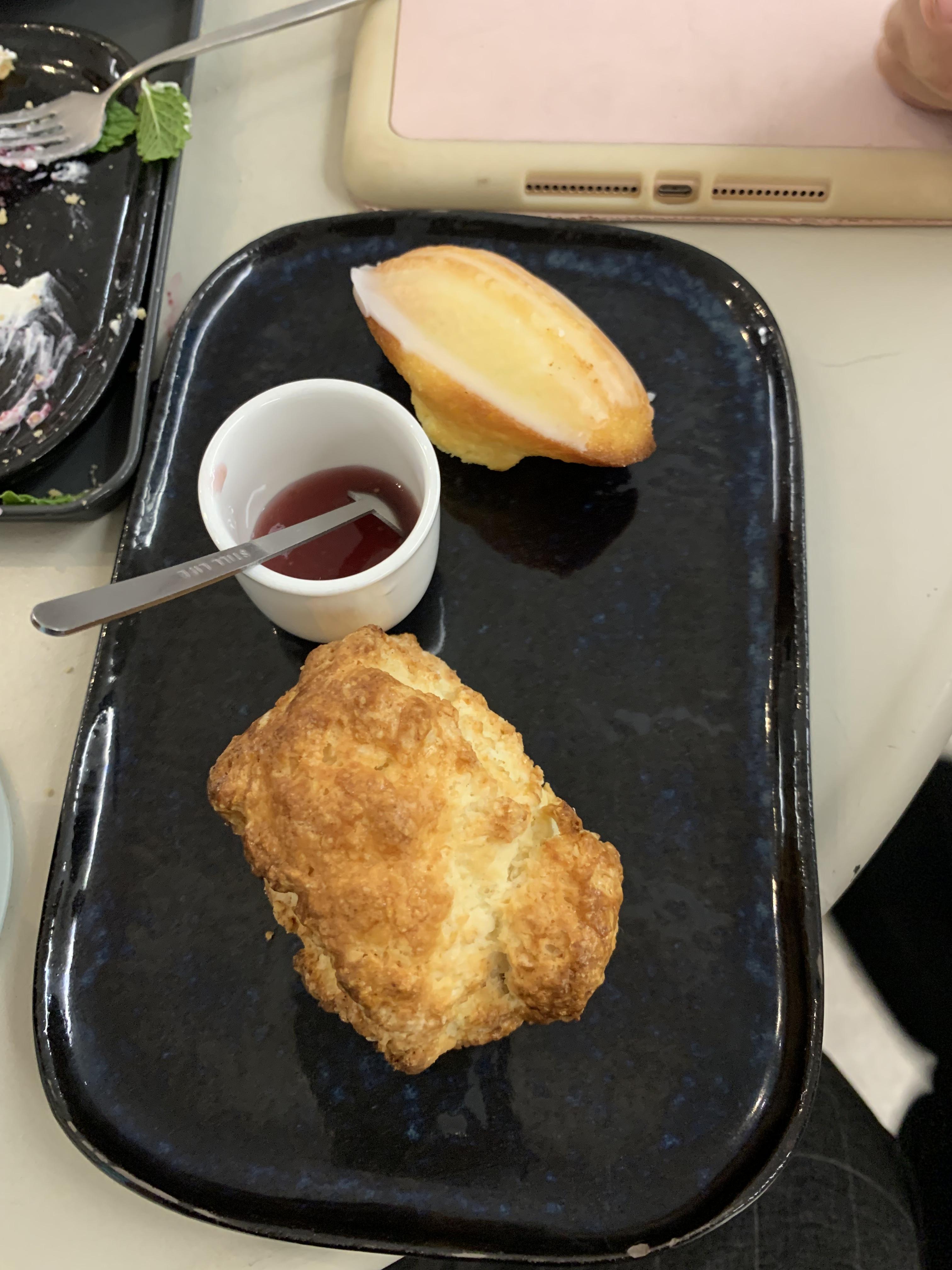 케이크(?) 비스무레한 디저트가 순삭당하고 추가로 다른 디저트 메뉴들도 시켜봤습니다. 마들렌과 스콘을 시켜봤는데요. 스콘은 그리 특별할 게 없었는데 마들렌이 무척 매력적입니다. 레몬향이 한 순간 입 안을 감싸는 듯 하더니만 순식간에 입 안에서 부드럽게 사라지더군요. 어디든 못하기 힘든 메뉴라서 크게 기대를 안했는데 제 취향을 저격당한 느낌이었습니다. 비 오는, 약간은 쌀쌀맞은 날씨라서 그 마들렌이 더 맛있었던 것 같네요. 아무튼 마들렌 강추드립니다.