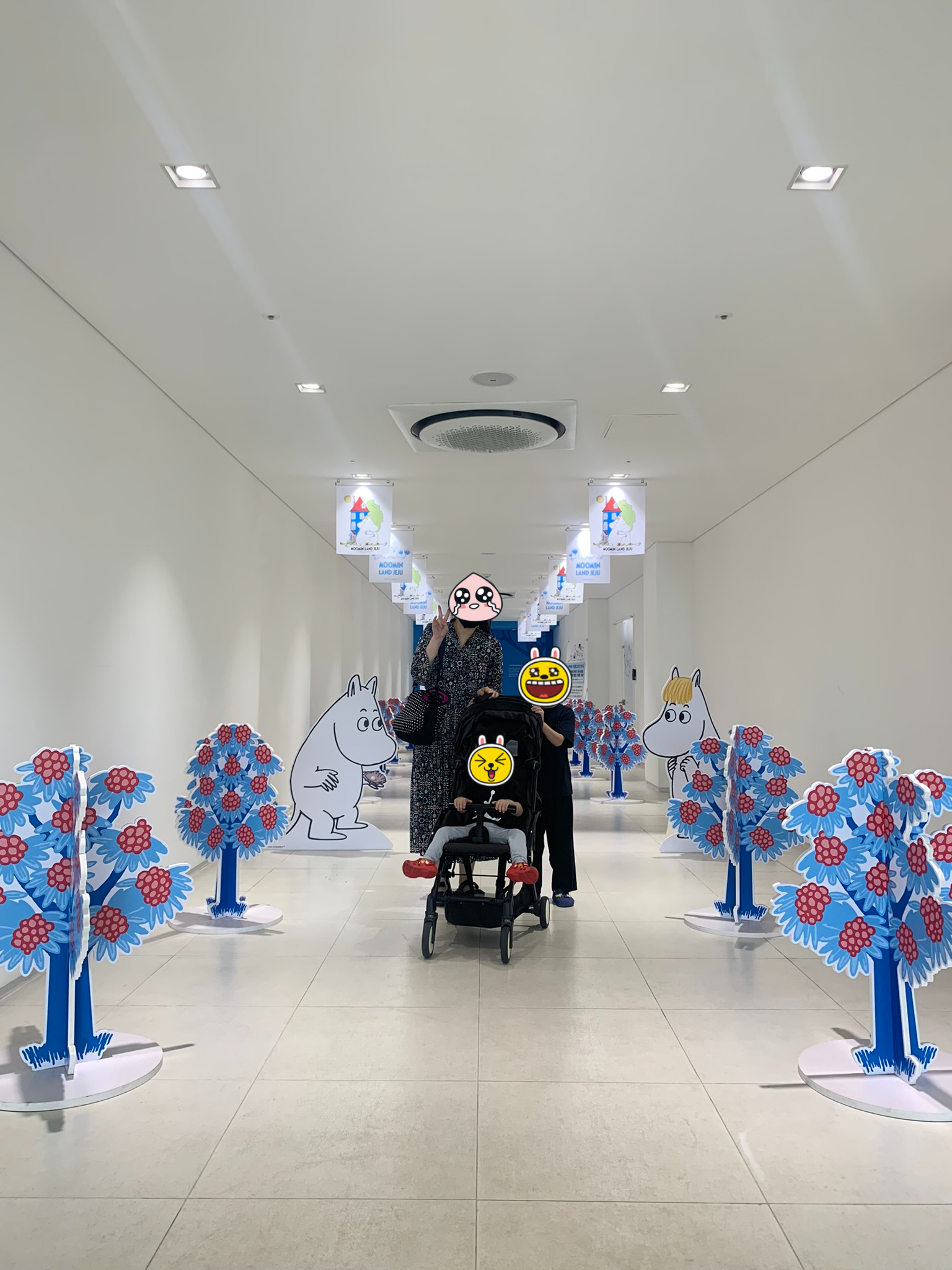 입장하자 순백의 복도 양옆으로 도열한 무민과 나무들을 만날 수 있습니다. 이게 이 곳을 찾는 사람들의 첫 인상인데 보자마자 한 컷 남기고 싶게 만드는 매력이 있네요.